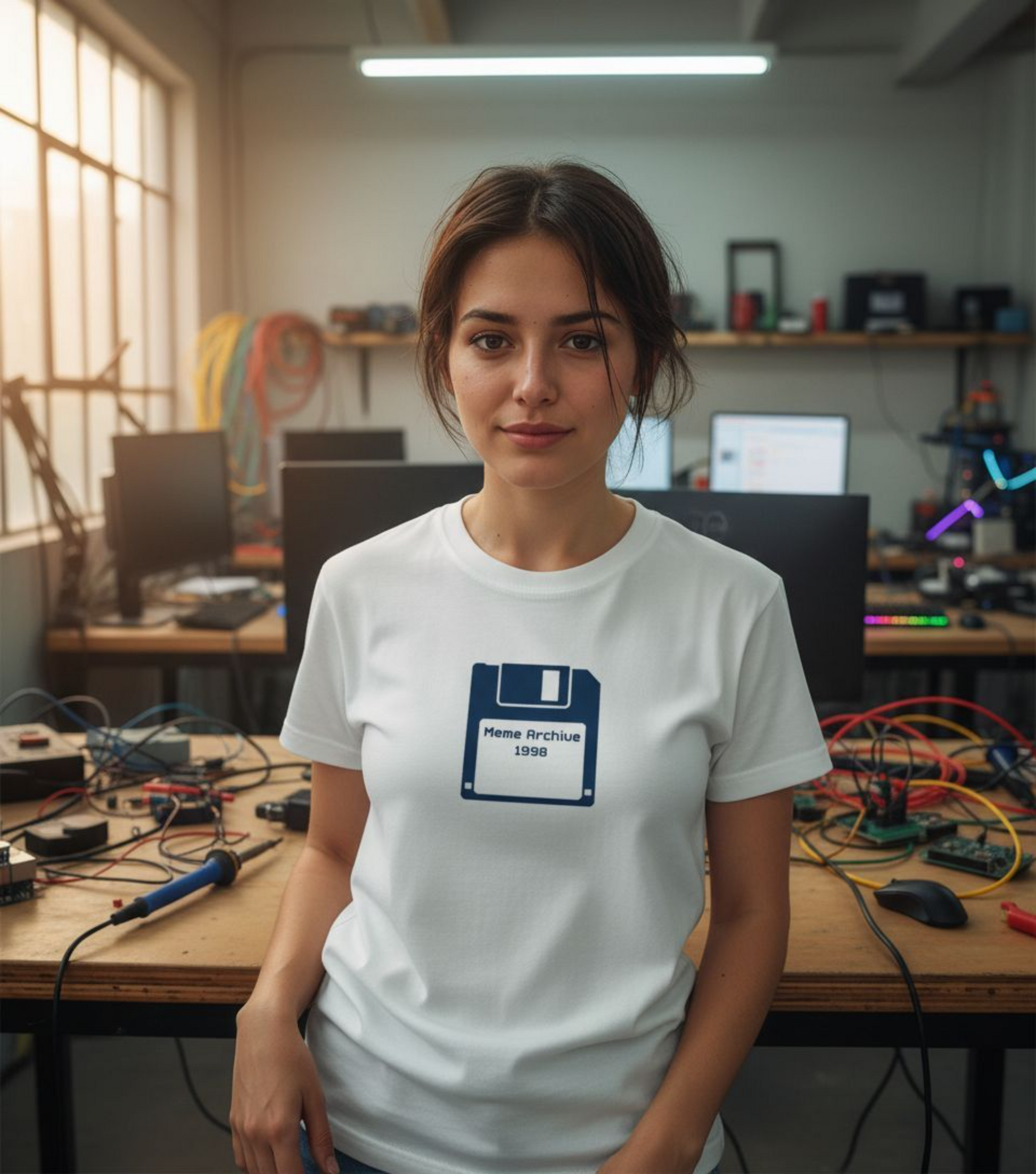 Style tip: Pair it with jeans and a smirk that says, “I remember when 1.44 MB was enough.”
